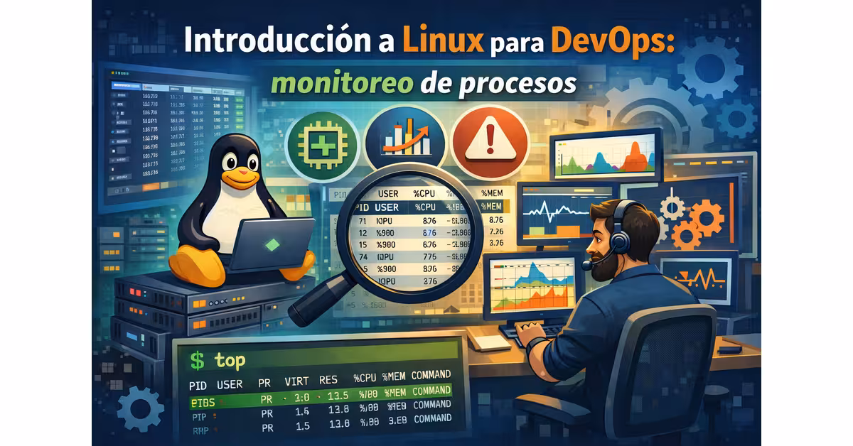 El monitoreo de procesos en Linux es un eje central en el trabajo diario de DevOps. Sin una estrategia clara para observar, analizar y reaccionar ante la ejecución de procesos, el funcionamiento interno del sistema se vuelve opaco y difícil de gestionar. Este tutorial, orientado a DevOps con nivel intermedio a alto, ofrece un recorrido práctico para aplicar comandos de monitoreo de procesos en Linux desde la terminal, interpretando resultados y optimizando el análisis. El objetivo es entregar herramientas sólidas y escalables para construir una base técnica confiable que permita avanzar hacia cursos y contenidos más complejos.